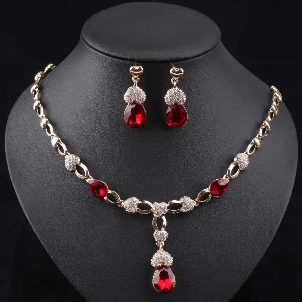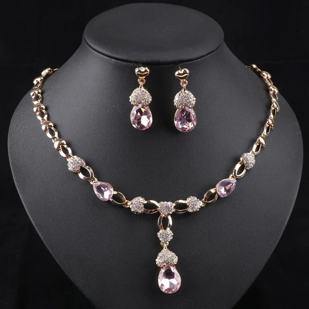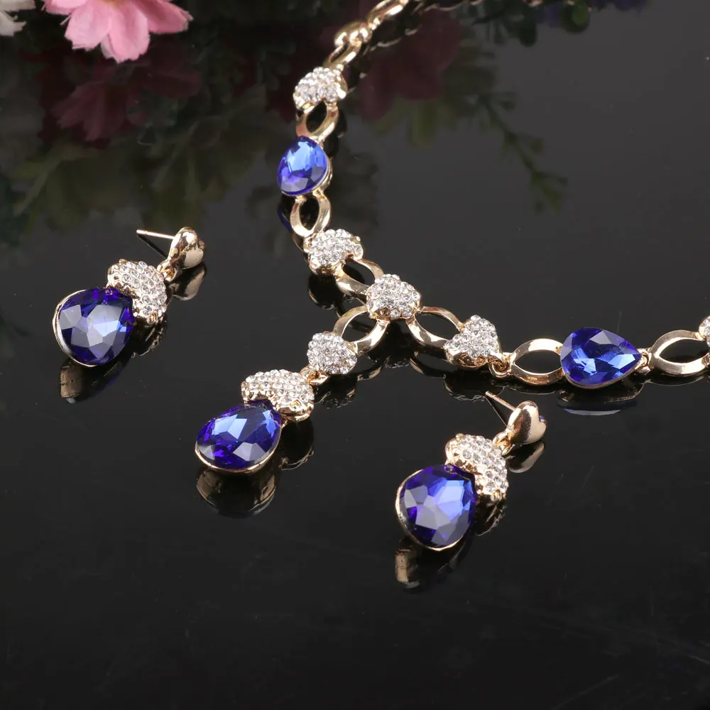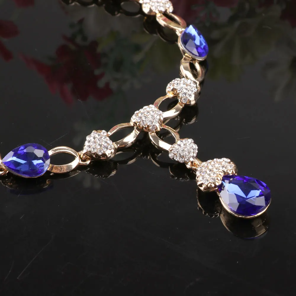 Buy African Wedding Jewelry Set Gold Color Women Dress Accessories Blue Crystal Necklace Earrings Sets