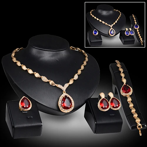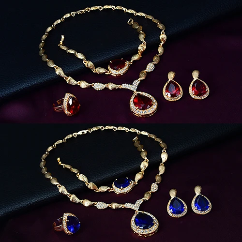 Buy Women Formal Party Waterdrop Cubic Zirconia Necklace Earrings Bracelet Ring Bridal Jewelry Sets for
